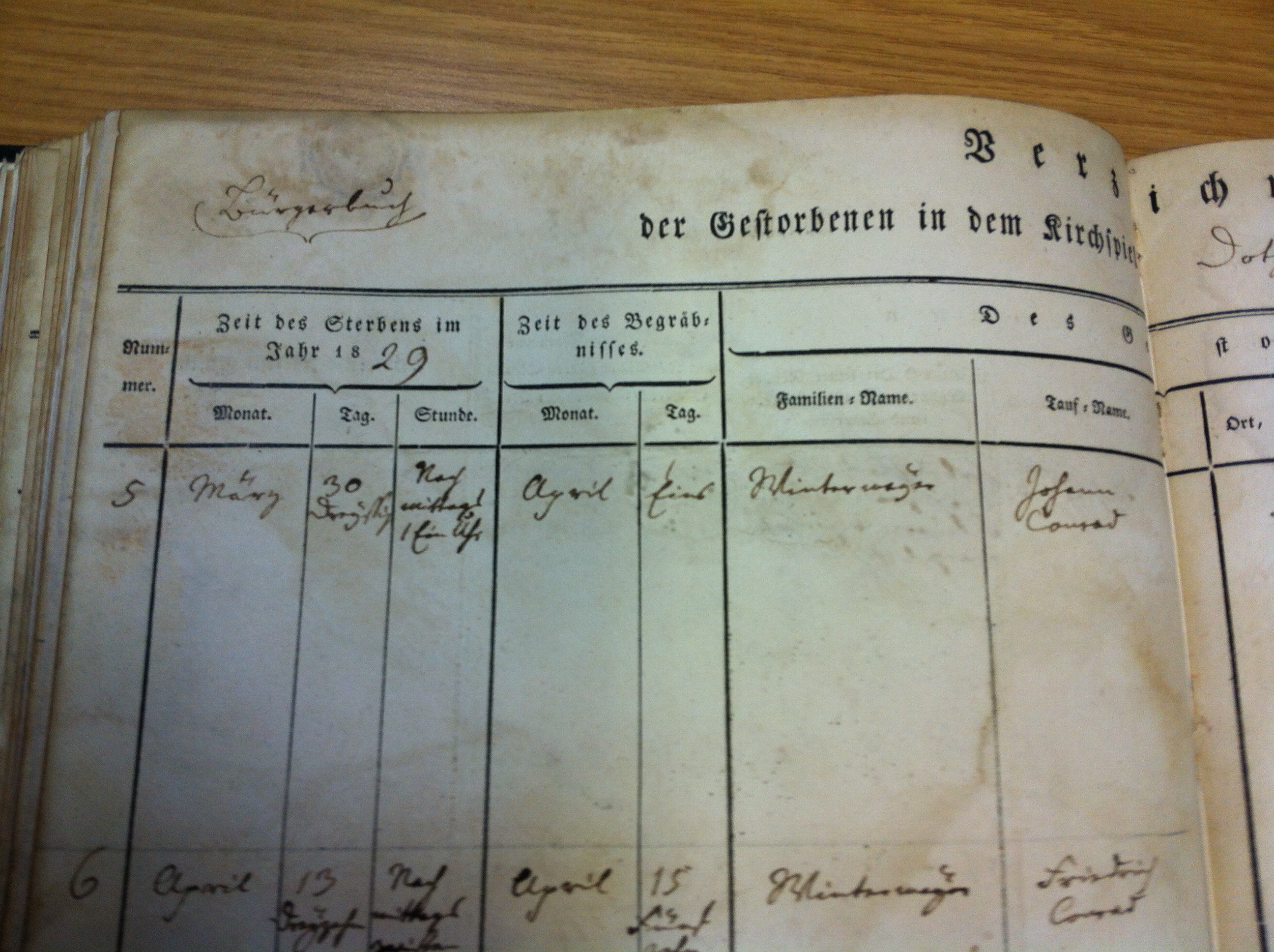 Beispielseite Zivilstandsregister Gestorbene